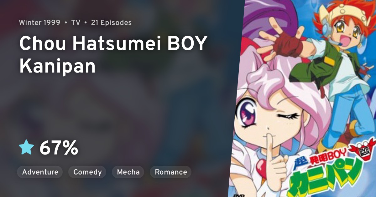 Hatsumei boy kanipan is a 1998 japanese anime television series produced by studio comet and broadcast on tv tokyo, replacing the 18:00 timeslot originally used for an early run of cowboy bepop. Kanipan is now a teenager, and still a famous inventor. Cho hatsumei boy kanipan plattform: Cho hatsumei boy kanipan is a continued story from hatsumei boy kanipan. It was immediately followed by a second season titled chō hatsumei boy kanipan (超発明boyカニパン, chō hatsumei bōi kanipan, trans.